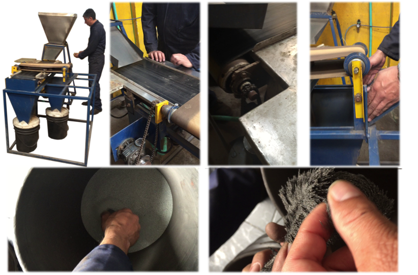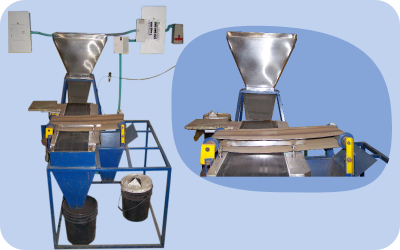 Esta máquina, desarrollada por Blasting Experts está compuesta por un conjunto de bandas transportadoras, motores y vibrador, tolvas de alimentación y salida a recipientes de material procesado. Está en capacidad de procesar de una a cinco toneladas por día, de abrasivo contaminado. Pueden operar con diversas referencias de abrasivos metálicos. Está construida en materiales resistentes a la acción de los abrasivos.