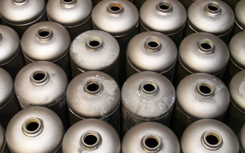 Segunda Etapa: Se hace una primera limpieza en la máquina granalladora automática RD-100, aproximadamente durante 9 minutos por cada 6 cilindros, en donde reciben un chorro de abrasivo impulsado por turbina.